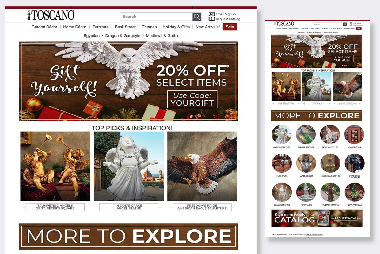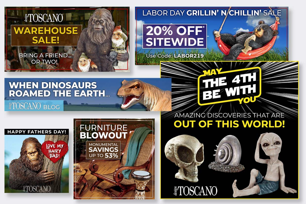 I am the Marketing Creative Digital Designer for Design Toscano, which sells unique garden decor, home decor, furniture, fountains and statues.